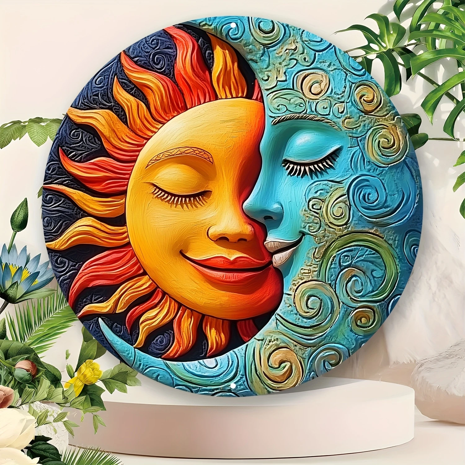 2D Flat Round Wooden Sign Sun And Moon Garden Decoration Farmhouse Garage Photo Props Gift Decoration House Or Gaden